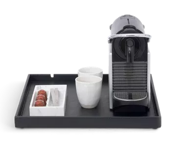 IPristatome „Fuji Black Welcome Tray Square“ – prabangų ir daugiafunkcį „Bentley Living“ kategorijos papildymą. Juodos spalvos audinys ir siūlės bei elegantiškas kvadratinis dizainas paverčia jį stilingu pasirinkimu kavos ir arbatos reikmenims bet kuriame viešbučio kambaryje pateikti.