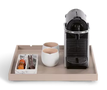 Pristatome „Fuji Natural“ kvadratinį pasveikinimo padėklą – prabangų ir daugiafunkcį „Bentley“ gyvenamųjų patalpų kategorijos papildymą. Natūralaus smėlio spalvos audinys ir siūlės bei elegantiškas kvadratinis dizainas paverčia jį stilingu pasirinkimu kavos ir arbatos reikmenims bet kuriame viešbučio kambaryje pateikti.