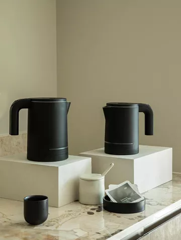Nors šis virdulys yra didesnės talpos, jis išlaiko kompaktišką dizainą, todėl jį lengva laikyti neužimant per daug vietos. Elegantiška juoda apdaila suteikia elegancijos bet kokiam kambariui.