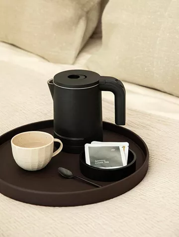 „Bentley“ galvojame apie viską, kai kalbama apie viešbučio kambario patogumus.Štai kodėl sukūrėme savo juodus virdulius, kurie būtų ir funkcionalūs, ir stilingi, kad jūsų svečiai galėtų mėgautis puikiu puodeliu arbatos ar kavos, kada tik panorėję.Pridėkite prie savo virdulio gražų pasveikinimo padėklą, kad sukurtumėte tobulą kavos ir arbatos kampelį.