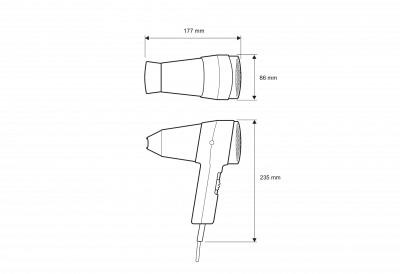 Korpusas pagamintas iš smūgiams atsparaus ABS plastiko. Prietaisas tiekiamas su atitinkamu banguotu antgaliu. Be to, rankinis plaukų džiovintuvas turi spiralinį laidą, kurį galima pailginti nuo 0,5 iki 2 m, užtikrinant pakankamą judėjimo laisvę. Tinka reikliems viešbučiams ir visur, kur svarbi speciali įranga.