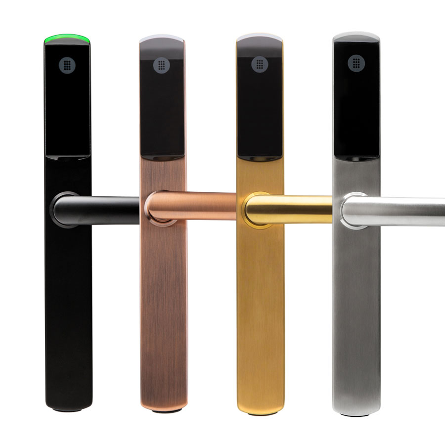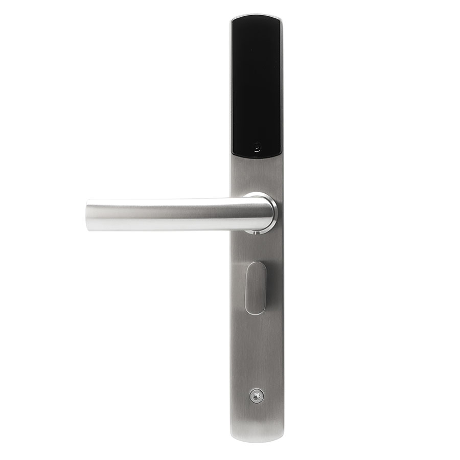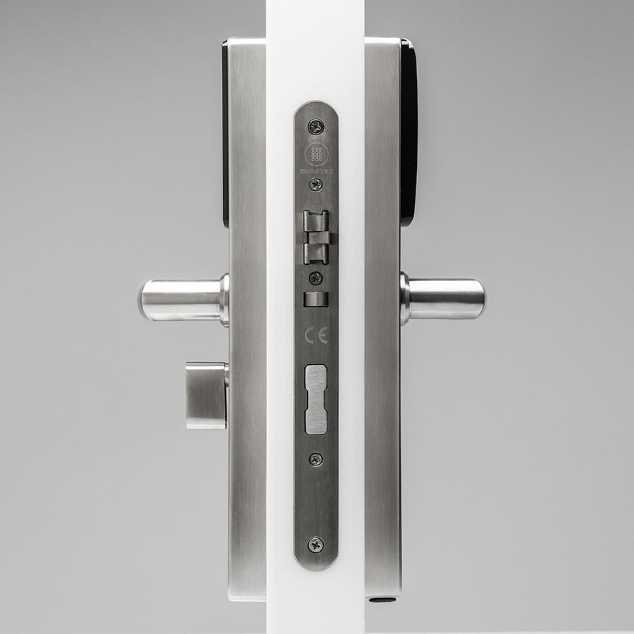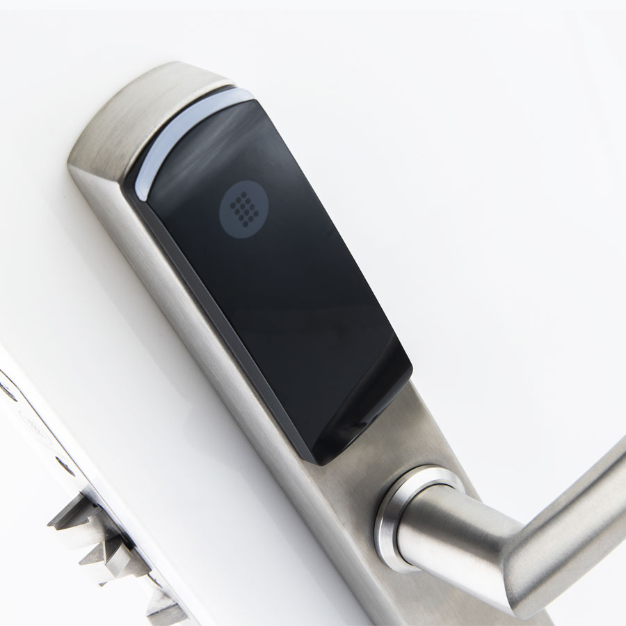 Elektroninė viešbučio spyna su plonu apvadu ir tiesiomis linijomis, suteikianti elegantišką ir nesenstantį vaizdą.
