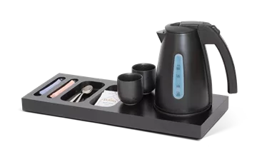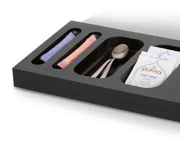 „Xanthic“ padėkle yra integruota vieta virdulio pagrindui ir 4 įdubimai maišeliams bei šaukšteliams, todėl jūsų svečiams lengva pasigaminti arbatos ar kavos. Be to, prie pagrindo pritvirtintas apsaugos nuo vagystės laidas užtikrina, kad jūsų padėklas ir jo turinys išliks saugūs.
