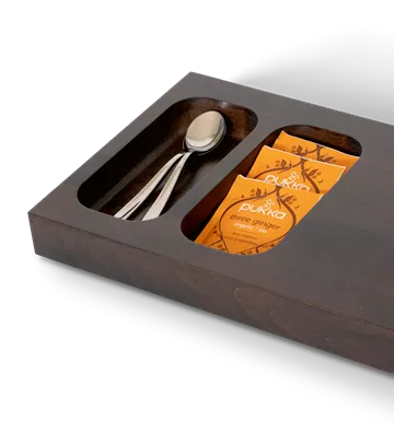 Pristatome nedidelį raudonmedžio pasveikinimo padėklą „Xanthic“.Kompaktiškas ir funkcionalus bet kurio viešbučio kambario papildymas.Su integruota vieta virdulio pagrindui, 2 įdubimais maišeliams ir šaukšteliams, jūsų svečiai galės lengvai pasigaminti arbatos ar kavos.